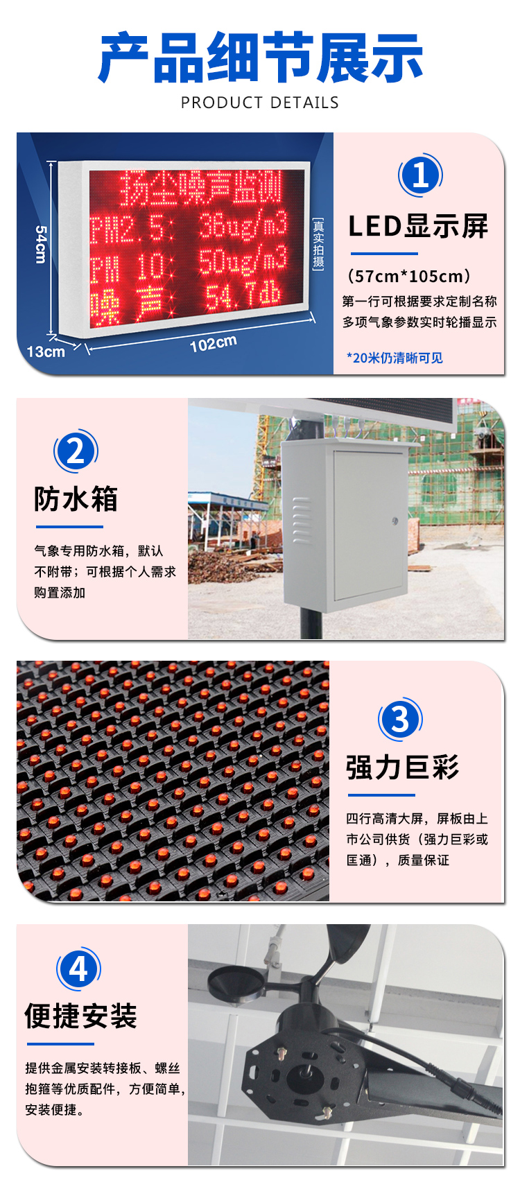 ★:设备成本低,可扩展视频监测 ★:污染物超标视频抓拍,实时检测 ★:超大LED显示屏,现场显示监测数据 ★:可同时监测PM2.5,PM10,TSP,温度、湿度,风速,风向...解决气体检测难题-东维图是您的不二之选。产品主要应用于:环保、航天军工、石油石化、燃气、医疗、矿、冶金、市政工程、通讯、养殖等领域!