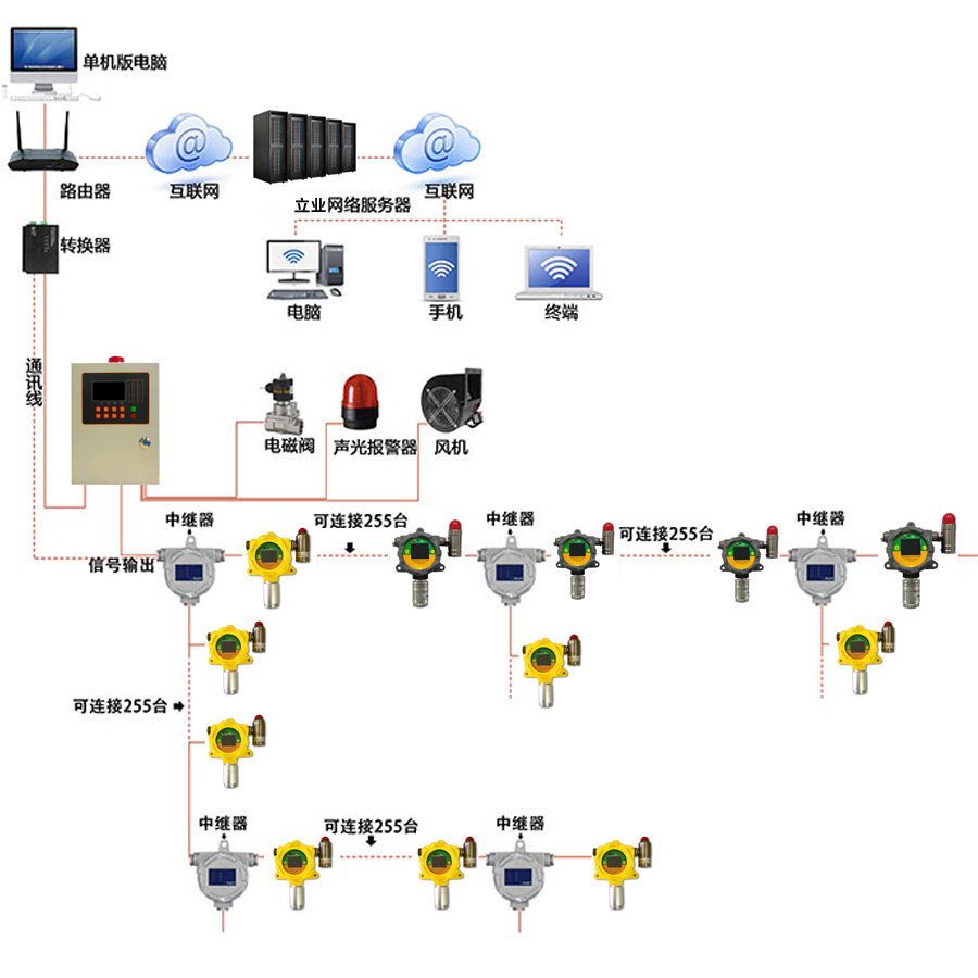 在CO2气控粮库建设中,粮库采用大型供气系统集中供气,粮库采用CO2浓度自动监测系统。当氧气浓度低于2%且二氧化碳达到一定浓度时,储粮害虫会迅速死亡。其实二氧化碳浓度监测系统实际上是利用二氧化碳传感器输出相应的二氧化碳浓度变化信号,提醒相关人员及时调整二氧化碳浓度。
